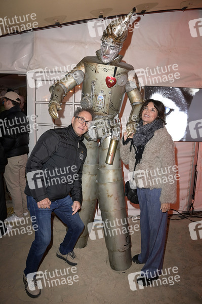 Gerit Kling mit Ehemann Wolfram Becker und Enrico Lein beim offiziellen Opening der Baltic Lights 2024 mit Fackellauf und Lagerfeuer an der Alex Strandbar. Heringsdorf, 01.03.2024