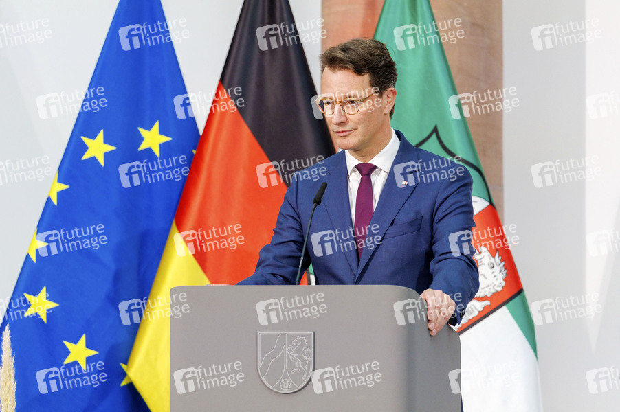 Hendrik Wüst bei der Verleihung des Staatspreises des Landes Nordrhein-Westfalen 2025 an Fotograf Andreas Gursky im K21. Düsseldorf, 04.11.2025