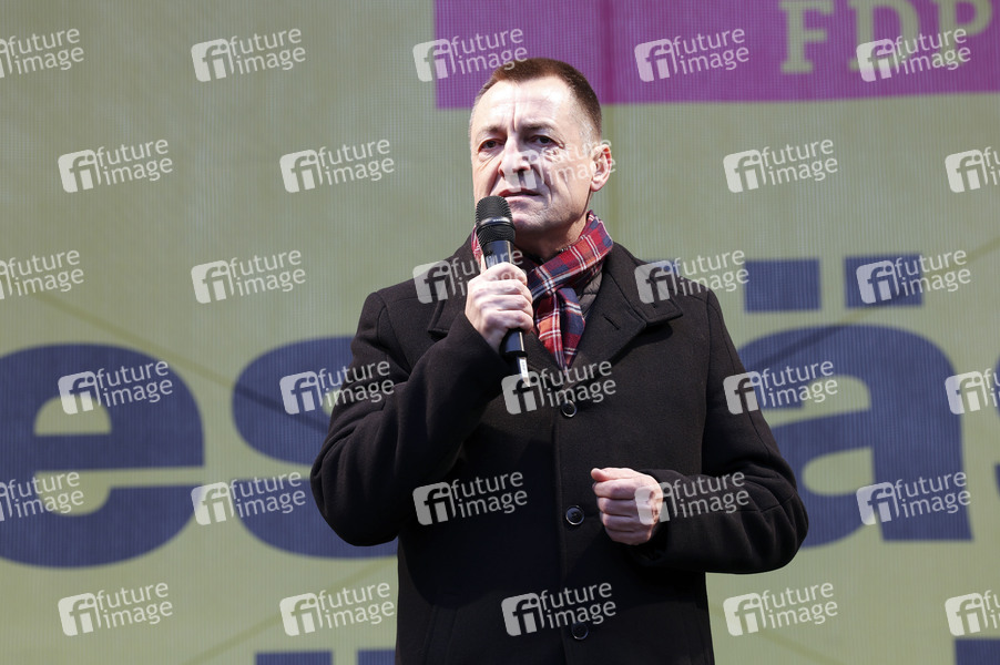Torsten Herbst bei einer Wahlkampfveranstaltung der FDP zum Bundestagswahlkampf 2025 am Dr. Külz Ring. Dresden, 06.02.2025
