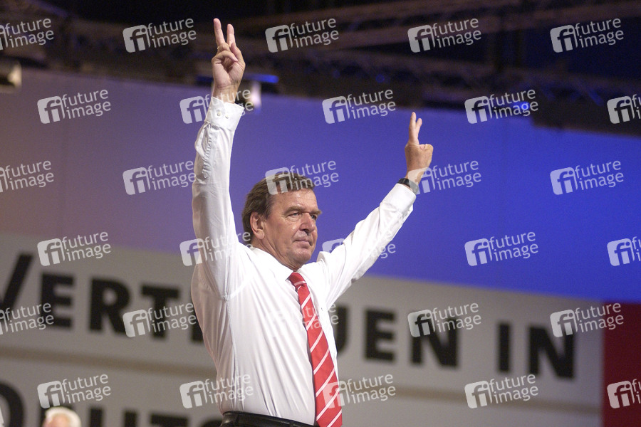 Gerhard Schröder beim Außerordentlichen Parteitag der SPD anlässlich der Bundestagswahl 2005 im Estrel Convention Center. Berlin, 31.08.2005