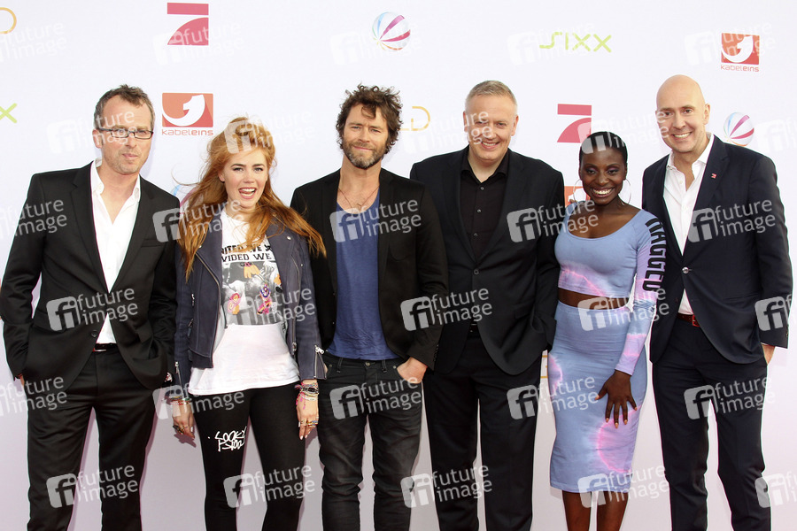 Nicolas Paalzow, Palina Rojinski, Howard Donald, Juergen Hoerner, Nikeata Thompson und Wolfgang Link bei der Jahresprogrammpraesentation 2013/2014 ProSiebenSat1. im Cruise Center Altona. Hamburg, 26.06.2013