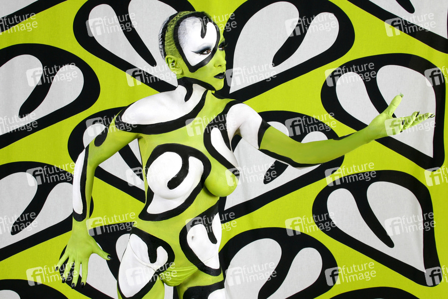 Bodypainting, Stoffdesign Anna Efverlund, Erotik, Frau, nackt, drinnen, weiblich, Muster, Chamäleon, erotic, woman, nude, indoor, female, chameleon