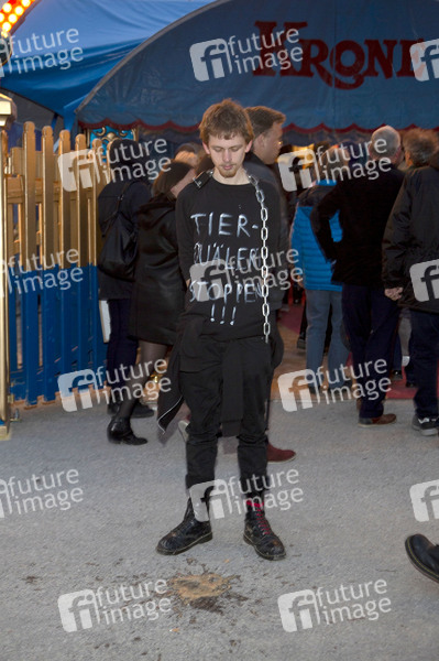 Tierschützer bei der Premiere des Tourneeprogramms 'Mandana - Circuskunst neu geträumt' vom Circus Krone auf der Theresienwiese. München, 04.04.2019