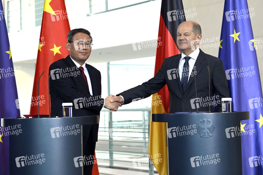 Li Qiang und Olaf Scholz bei der Pressekonferenz zu den 7. Deutsch-Chinesischen Regierungskonsultationen unter dem Titel 'Gemeinsam nachhaltig handeln' im Bundeskanzleramt. Berlin, 20.06.2023