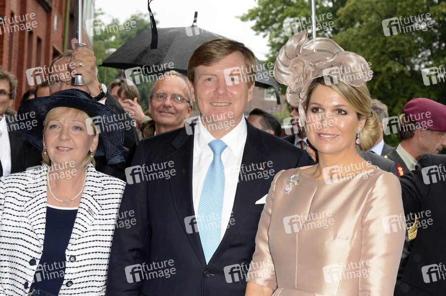 Hannelore Kraft, König Willem-Alexander der Niederlande und Königin Maxima der Niederlande bei ihrer Ankunft bei der Firma MMID vor dem Gebäude G7 auf der Katernberger Strasse. Essen, 27.05.2014