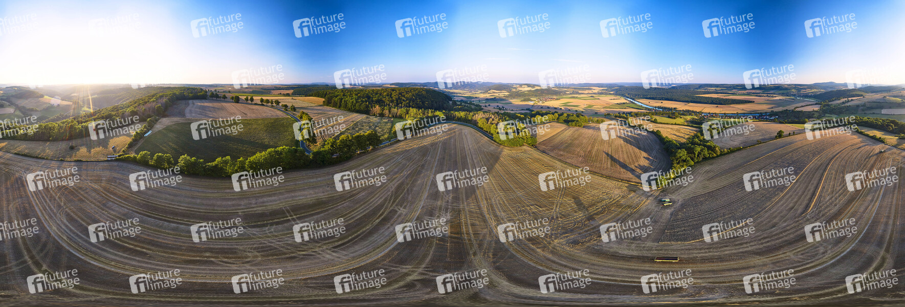 Panorama, Luftbild, Luftaufnahme, Korn, Kornfeld, Vollkorn, Ähren, Halme, Feld, Landwirtschaft, Dürre, Trockenheit, Wasser, Regen, Grundwasser, Wasserknappheit, Grundwasserspiegel, Grundwasserpegel, Trockenphase, Ernte, Ernten, Getreide, Landwirte, Bauern, Acker, Äcker, Weizen, Gerste, Roggen, Wheat, Rye, Barley, Körner, Triticale, Anbau, Bio, Dünger, Agrar, Agrarwirtschaft, Erntewetter, Ernteausfall, Ernteausfälle, Futterkrise, Missernte, Futter, Saat, Saatgut, Anbau, Fruchtbarkeit, Bauern, Bauernverband, Symbolbild, Symbolfoto