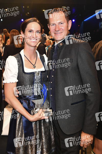 Simone Blum mit Ehemann bei der Verleihung vom 18. Bayerischen Sportpreis 2019 in der BMW Welt. München, 13.07.2019