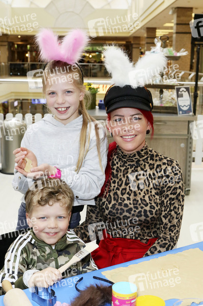 Dana Diekmeier mit Tochter Delani und Sohn Dion beim Promi-Osterbacken zugunsten der Tribute to Bambi Stiftung im Alstertal-Einkaufszentrum. Hamburg, 28.03.2019