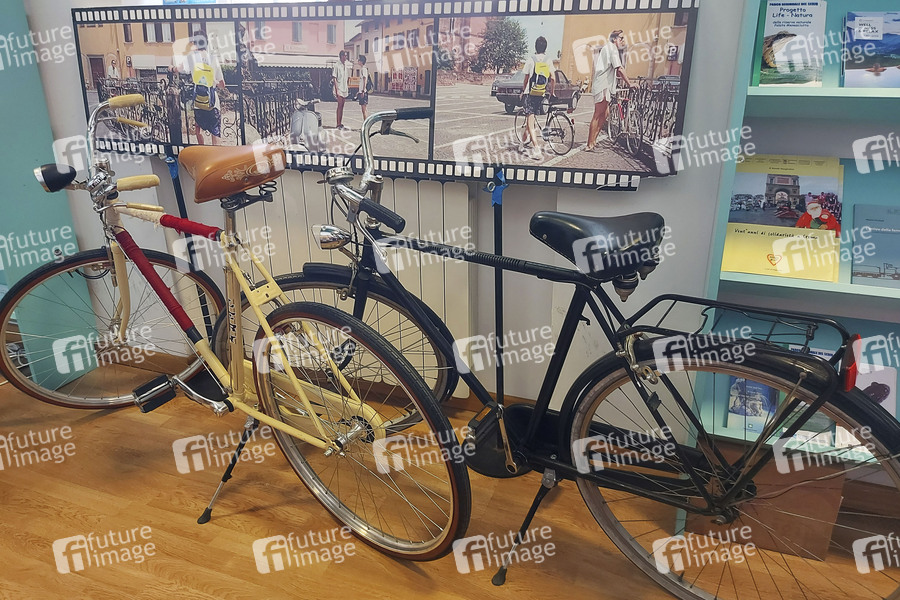 In Crema wurde der Film 'Call Me by Your Name' von Luca Guadagnino zum Großteil gedreht. Im Bild Touristeninformation mit Infos und Originalrequisiten aus dem Film . Crema, 31.07.2024