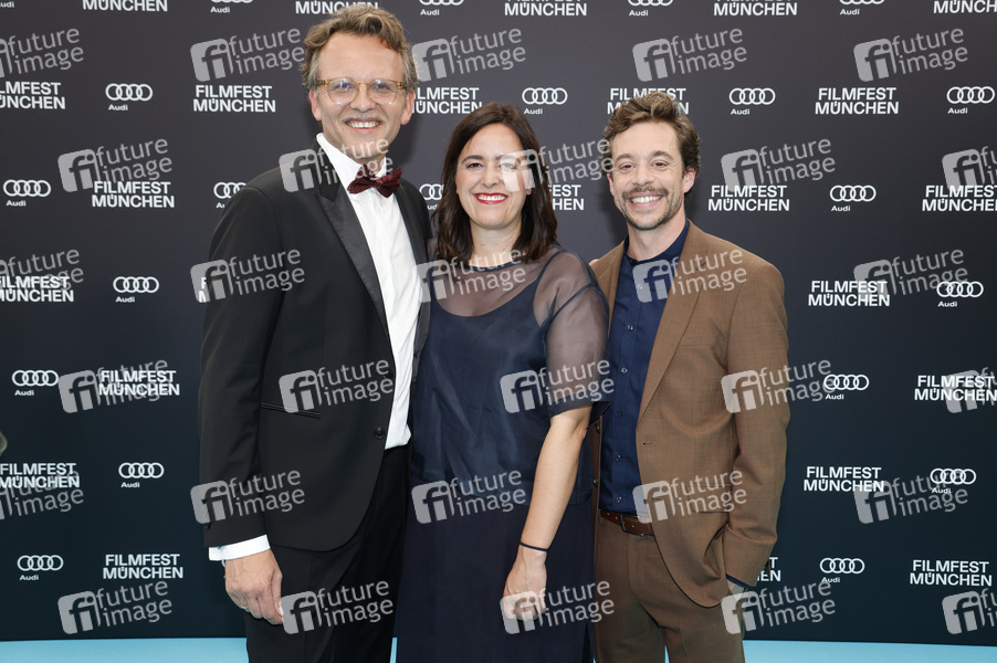 Christoph Gröner, Julia Weigl und Tobias Krell bei der Festivaleröffnung mit der Premiere des Kinofilms 'Zwei zu eins' auf dem 41. Filmfest München 2024 im Gasteig HP8. München, 29.09.2024