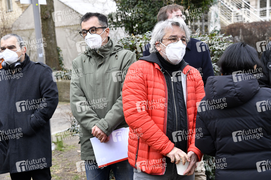 Cem Özdemir und Can Dündar bei der Pressekonferenz des KulturForum TürkeiDeutschland zur Solidarität mit den gesamten demokratischen Kräften in der Türkei, insbesondere mit inhaftierten Schriftsteller*innen, Künstler*innen, Journalist*innen, Gewerkschafter*innen und Politiker*innen vor dem Maxim Gorki Theater. Berlin, 23.03.2021