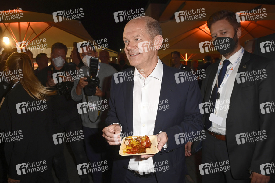Olaf Scholz beim 'Triell - Dreikampf ums Kanzleramt' von ARD und ZDF mit den Kanzlerkandidaten im Studio Berlin-Adlershof. Berlin, 12.09.2021