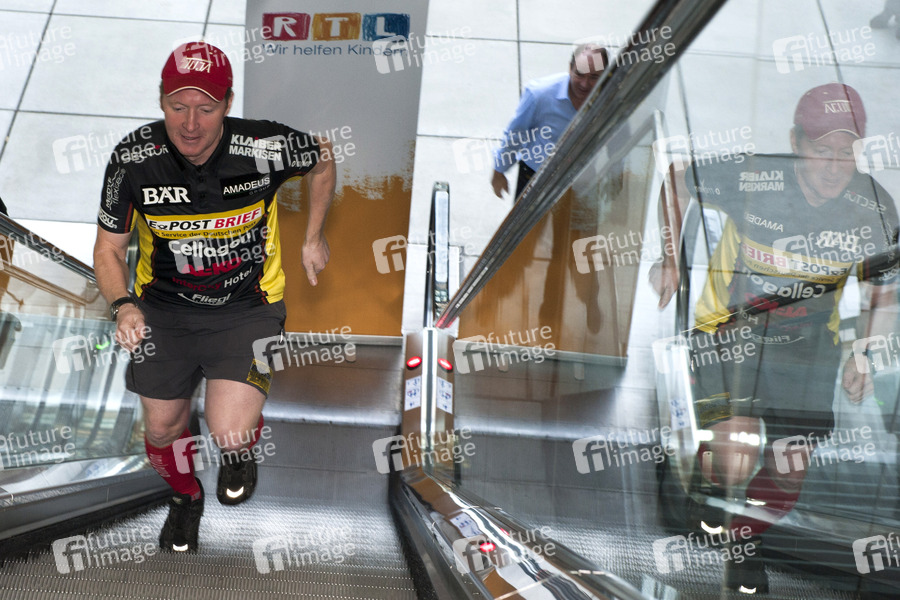Pressetermin zum Guinness Weltrekord-Versuch. Joey Kelly will parallel zum RTL-Spendenmarathon eine herunterfahrende Rolltreppe 24 Stunden lang hochsteigen im RTL-Gebäude, Köln