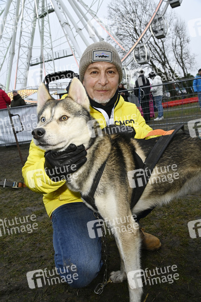 Erdogan Atalay beim Kennenlernen der Hunde und beim Renntraining für die Baltic Lights 2025 an der Seebrücke Heringsdorf. Heringsdorf, 28.02.2025