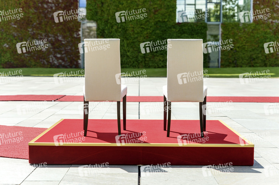 Beim Empfang mit militärischen Ehren für die dänische Ministerpräsidenten stehen Stühle im Hof des Bundeskanzleramts bereit. Berlin, 11.07.2017
