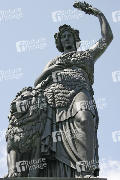 weibliche Symbolgestalt und weltliche Patronin Bayerns, im Auftrag von König Ludwig I. in den Jahren 1843-1850 errichtet, Entwürfe von Leo von Klenze, 18.52 Meter hoch, Bronzehohlguss, Höhe des Steinsockels 8.92 Meter, Bildhauer Ludwig Schwanthaler