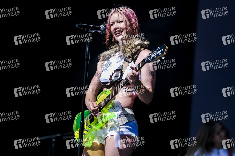 Rhian Teasdale von Wet Leg live auf dem Glastonbury Festival 2025 auf der Worthy Farm. Pilton, 27.06.2025