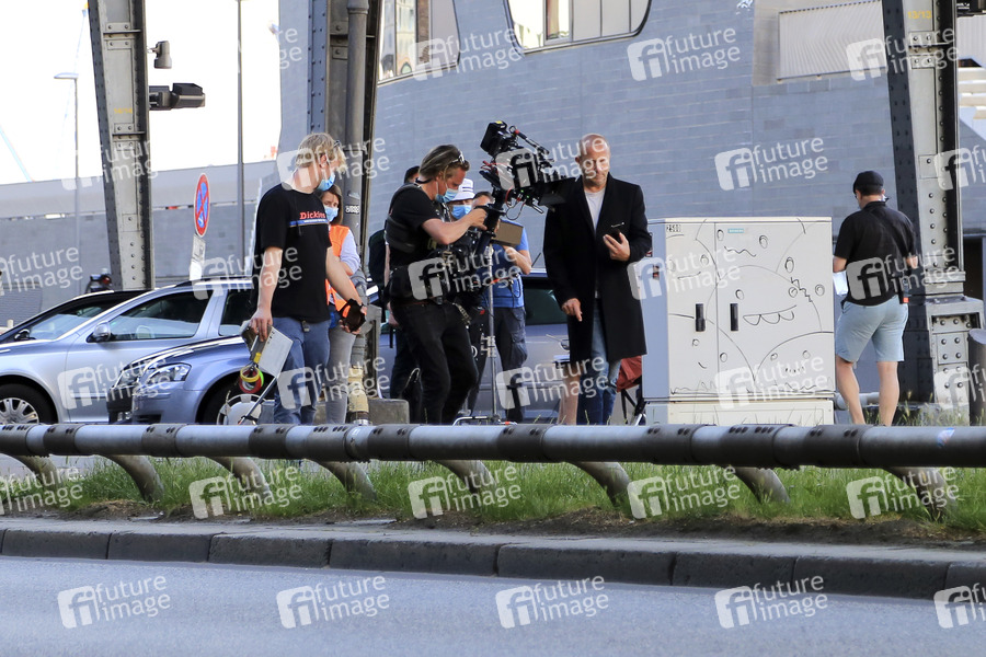 Heino Ferch bei den Dreharbeiten zum ARD TV-Film 'Blöd gelaufen - Danke für den Abschied' an den Landungsbrücken. Hamburg, 16.06.2020