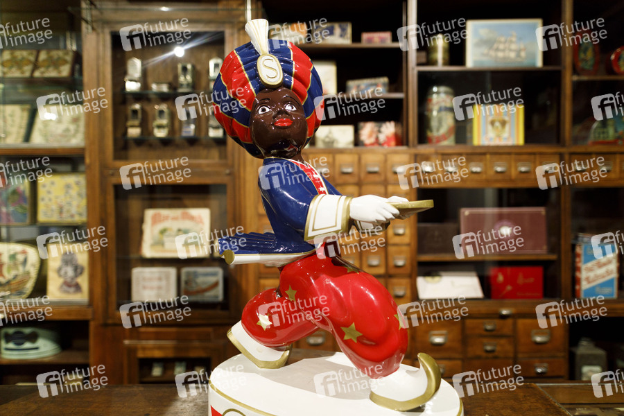 Ein Sarotti-Mohr wie er früher als Werbefigur für Sarotti Schokolade aufgestellt wurde im Kölner Schokoladenmuseum. Köln, 09.04.2019