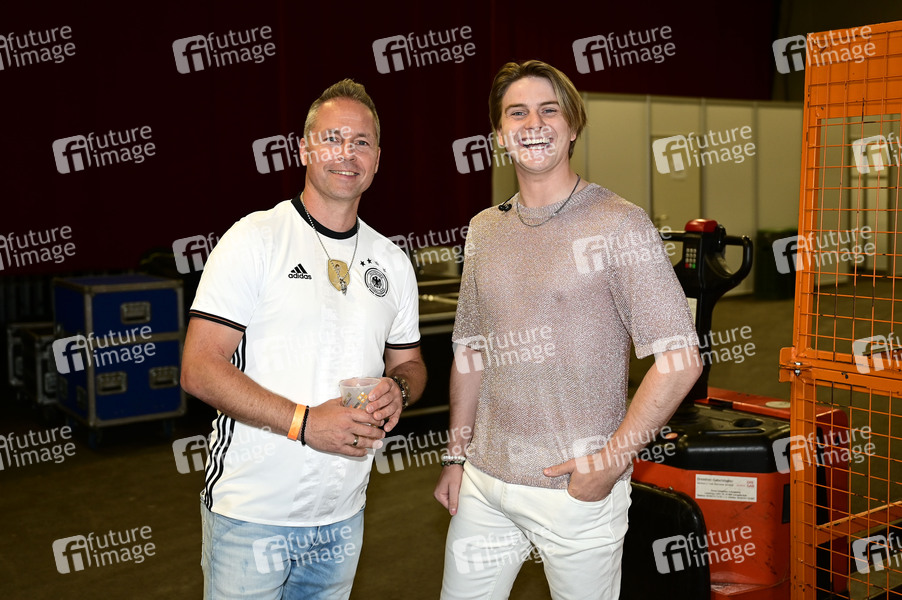 Mitch Keller und Vincent Gross beim Radio Schlagerparadies Sommer Open Air 2024 im Messepark. Löbau, 23.06.2024