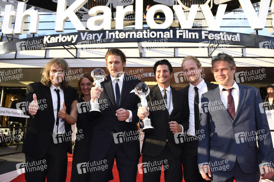 Jan-Ole Gerster mit seinem Team mit dem Special Jury Prize für seinen Film 'Lara' und und dem Crystal Globe für die beste Schauspielerin Corinna Harfouch bei der Abschlussveranstaltung mit Preisverleihung vom 54. Internationalen Filmfestival Karlovy Vary 2019 im Hotel Thermal. Karlsbad, 06.07.2019