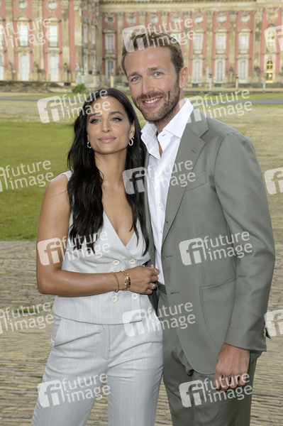 Amira Pocher mit Freund Christian Düren bei der Marc Cain Fashion Show 'Pure Radiance - Frühjahr/Sommer 2025' auf der Berlin Fashion Week S/S 2025 in der Kolonnade mit Triumphtor am Neuen Palais. Potsdam, 02.07.2024