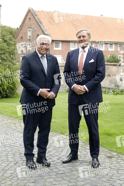 Frank-Walter Steinmeier und König Willem-Alexander der Niederlande bei der Begrüßung anlässlich von 30 Jahre Deutsch-Niederländisches Corps im Schloss Wilkinghege. Münster, 25.09.2025