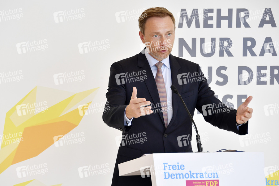 Christian Lindner bei einem Pressestatement der FDP vor der Fraktionssitzung auf der Fraktionsebene im Reichstagsgebäude. Berlin, 18.05.2021