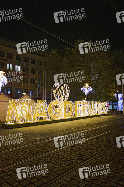 Lichterwelt-Winterwunderland vor dem City Carre - Die Licherwelt Magdeburg mit der umfangreichste Weihnachts- und Winterbeleuchtung in Mitteldeutschland verteilt über die ganze Stadt. Magdeburg, 22.11.2022