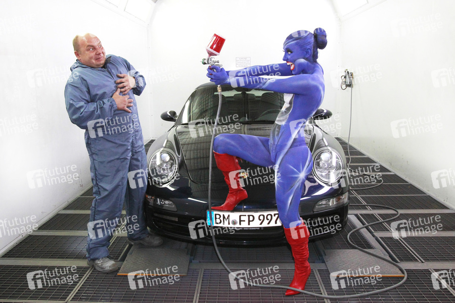 Bodypainting, Erotik, Frau, Mädchen, nackt, drinnen, weiblich, Körperkunst, Kunst, Malerei, Auto, Porsche, erotic, woman, girl, nude, indoor, female, body art, body painting, car