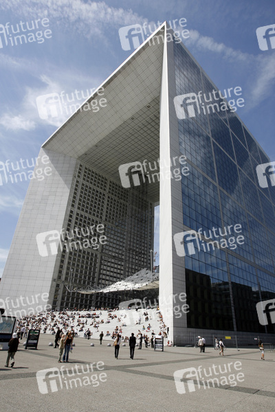 La Grande Arche de la Fraternité, modernes Bauwerk in Form eines Triumphbogens, erbaut zwischen 1984 und 1989 auf Initiative des damaligen Präsidenten François Mitterrand, Entworfen von Johan Otto von Spreckelsen und Paul Andreu, Höhe ca. 111 m, Breite ca. 107 m, Länge 112 m, 35 Etagen