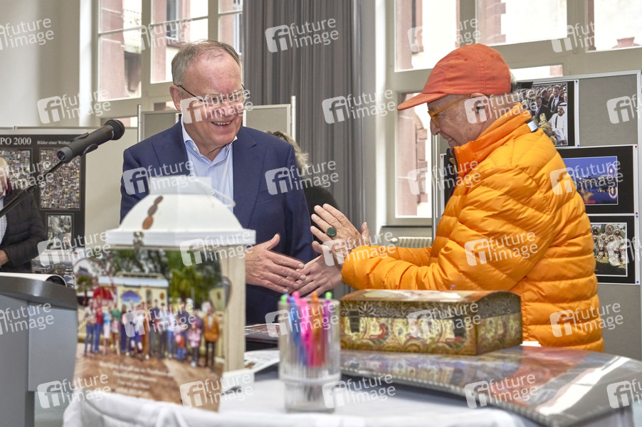 Stephan Weil und Hassan Mahramzadeh bei der Auszstellungseröffnung '25 Jahre EXPO 2000 - Bilder einer Weltausstellung' von Hassan Mahramzadeh unter der Schirmherrschaft von Ministerpräsident a.D. Stephan Weil im Bürgersaal vom Neuen Rathaus. Hannover, 26.10.2025