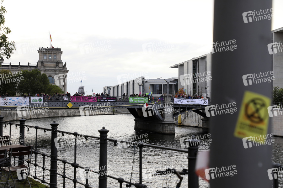 Aktivisten der Klimabewegung 'Extinction Rebellion' blockieren die Marschallbrücke. Berlin, 09.10.2019
