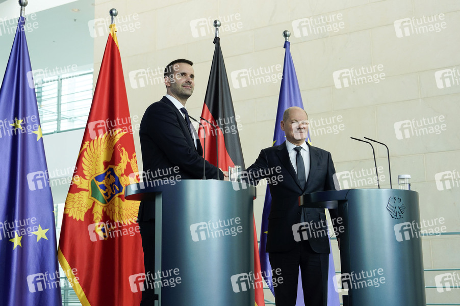 Milojko Spajic und Olaf Scholz beim Antrittsbesuch des Ministerpräsidenten von Montenegro mit militärischen Ehren und zu einem gemeinsamen Gespräch mit dem Bundeskanzler mit anschließendem Pressestatement im Bundeskanzleramt. Berlin, 29.04.2024