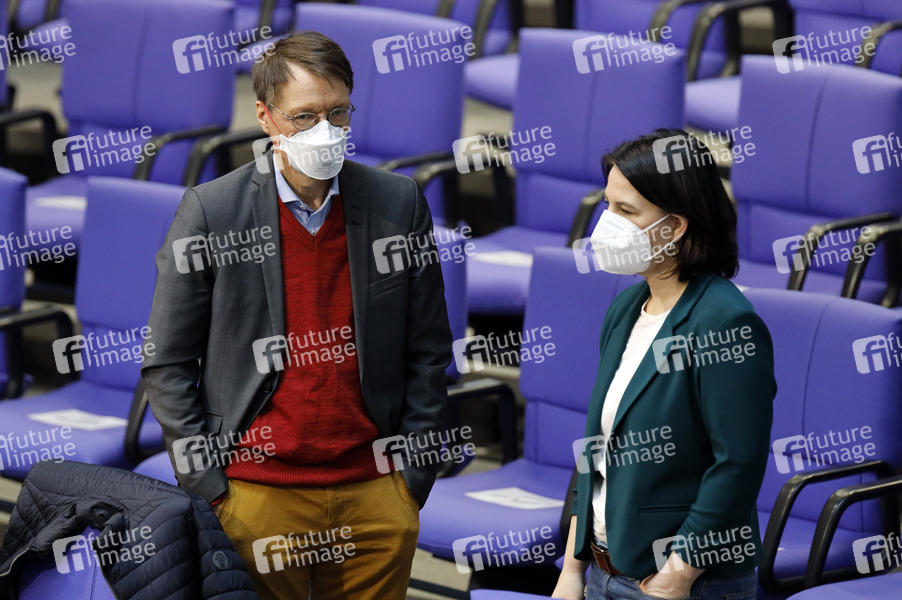 Karl Lauterbach und Annalena Baerbock in der 218. Sitzung des Deutschen Bundestages im Reichstagsgebäude. Berlin, 25.03.2021