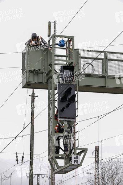 Installation Signalbrücke beim Fototermin 'Endspurt für das Elektronische Stellwerk (ESTW) Linker Rhein' am Bahnhof Köln-West. Köln, 13.03.2024