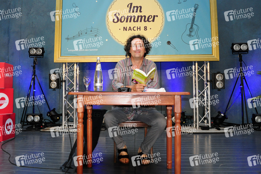 Peter Godazgar bei einer Lesung im Rahmen der Veranstaltungsreihe 'Im Sommer nach 8' im Hof des Neuen Theaters. Halle/Saale, 09.08.2020