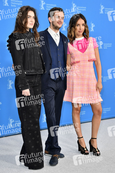 Anamaria Vartolomei, Brandon Vlieghe und Lyna Khoudri beim Photocall zum Kinofilm 'L'Empire / The Empire' auf der Berlinale 2024 / 74. Internationale Filmfestspiele Berlin im Hotel Grand Hyatt. Berlin, 18.02.2024