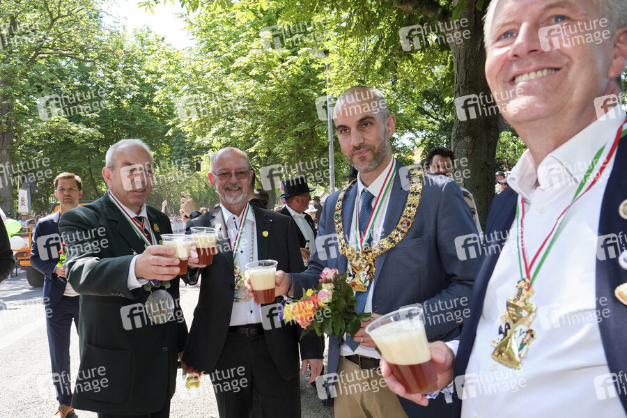 Volker Kluwe (Polizeipräsident Hannover), Paul-Eric Stolle (Präsident Verband Hannoverscher Schützenvereine), Belit Onay (Oberbürgermeister Landeshauptstadt Hannover) und Christian Wulff (Bundespräsident a.D.) beim Schützenausmarsch zum 493. Schützenfest in der Innenstadt. Hannover, 03.07.2022