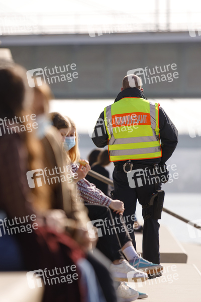 Das Kölner Ordnungsamt führt am Deutzer Ufer, in Parks und am Rheinboulevard Schwerpunktkontrollen zur erweiterten Maskenpflicht während der Coronakrise durch. Die Corona-Regeln wurden trotz sinkendem Inzidenzwert noch einmal verschärft, weil am vorherigen Wochenende viele Spaziergänger ohne Masken und Mindestabstand in den Kölner Grünanlagen die Sonne genießen wollten. (Themenbild, Symbolbild) Köln, 27.02.2021