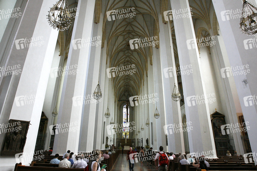Dom zu Unserer Lieben Frau, Kathedralkirche des Erzbischofs von München und Freising, spätgotischer Backsteinbau, 109 m lang, 40 m breit, 37 m hoch, Nordturm, 98, 57 Meter, Südturm 98, 45 Meter