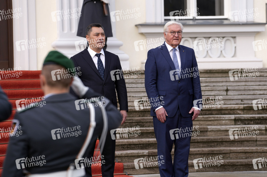 Sadyr Dschaparow und Frank-Walter Steinmeier beim Empfang des Präsidenten der Kirgisischen Republik mit militärischen Ehren und zum gemeinsamen Gespräch im Schloss Bellevue. Berlin, 26.11.2024