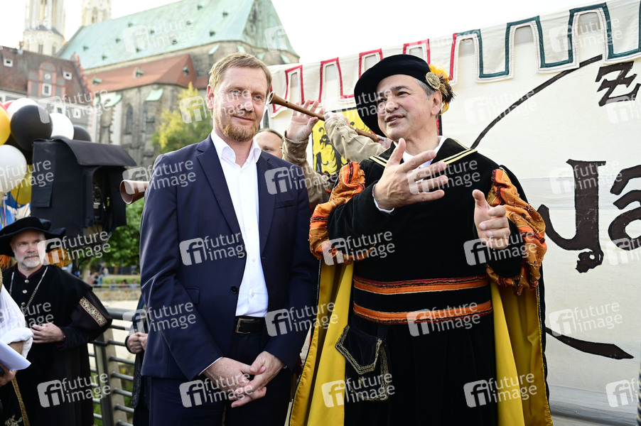 Michael Kretschmer und Octavian Ursu am Eröffnungstag vom Altstadtfest an der Altstadtbrücke. Görlitz, 29.08.2025