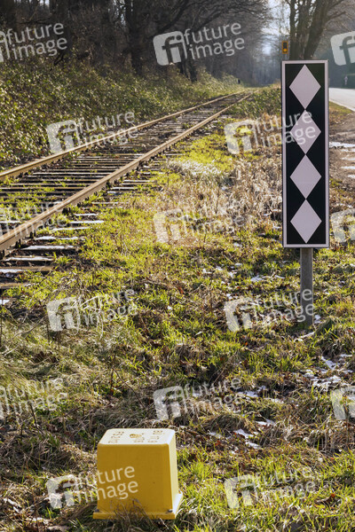 Signalordnung, Bahnbetrieb, Bahnübergang, Signal, Bahn, DB, Eisenbahn, rückstrahlende weiße Rauten, Eisenbahnsignal, Bahnübergangssicherungsanlagen, Geschwindigkeit, Streckenabschnitt, Eisenbahn-Signalordnung, ESO, Eisenbahnrecht, Bahnschienen, Schwellen, Schienen, Bahnverkehr, Bahngleis, Bahnkörper, Bahntechnik, Schienenverkehr, Symbolfoto, Themenfoto