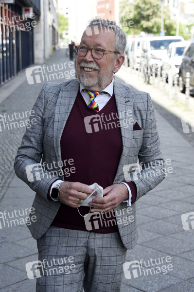 Karl-Heinz Brunner bei der Hissung der Regenbogenflagge anlässlich des Internationalen Tages gegen Homo-, Bi-, Inter- und Transphobie am Willy-Brandt-Haus. Berlin, 17.05.2021