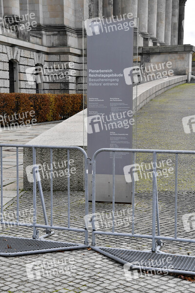 Tausende Demonstranten protestieren am Brandenburger Tor und im Regierungsviertel gegen die Corona-Politik der Regierung. Wegen der massenhaften Verstöße gegen die Hygieneauflagen droht die Polizei mit Auflösung der Versammlung. Das Gelände vor dem Bundestag ist abgesperrt, dort sind Proteste verboten. Berlin, 18.11.2020