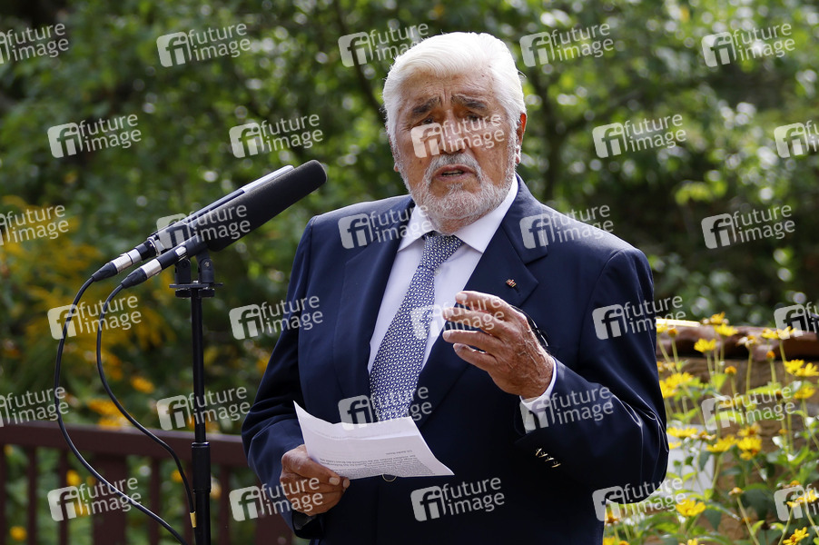 Mario Adorf bei der Verlegung eines Stolpersteins für NS-Opfer Bruno Lüdke in der Grünen Trift in Köpenick. Berlin, 28.08.2021