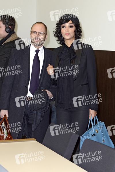 Verona Pooth mit ihrem Anwalt vor der 11. grossen Strafkammer des Düsseldorfer Landgerichts 5. Zivilkammer. Die Münchner Agentur 'Krug Mediapool' von Martin Krug verklagt Verona Pooth vor dem Landgericht Düsseldorf. Den Streitwert hat das Gericht vorläufig auf 70 000 Euro festgelegt. Düsseldorf, 26.02.2014