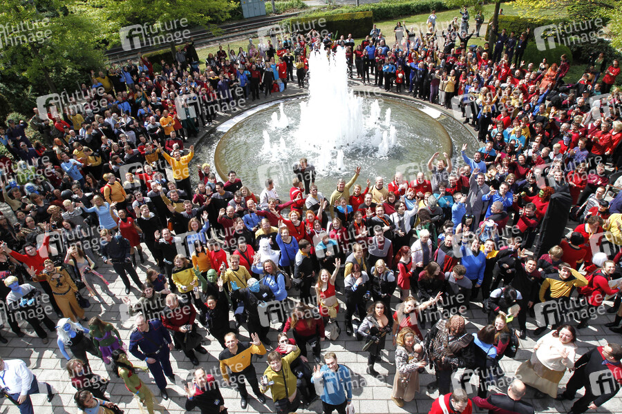 FedCon XIX im Bonner Maritim Hotel, Tag 2. Neuer Weltrekord für ein Treffen von Trekkies in Kostümen und Uniformen aus den Star Trek Serien und -Filmen für das Guinness Buch der Weltrekorde. 507 Fans trafen sich im Innenhof des Maritim Hotels in Bonn