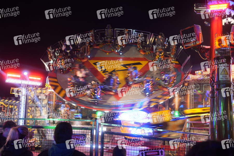 Fahrgeschäft auf dem Weihnachtsmarkt 'Lichtenberger Winterzeit' an der Landsberger Allee im Berliner Bezirk Lichtenberg. Berlin, 03.11.2024